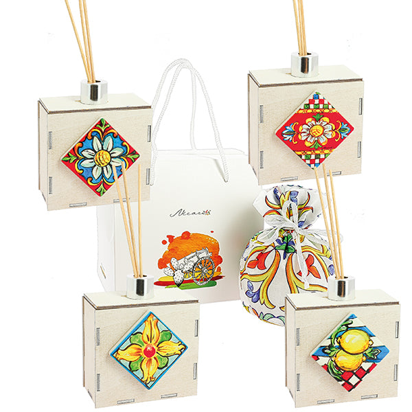 Bomboniera Nicarè profumatore legno con maiolica